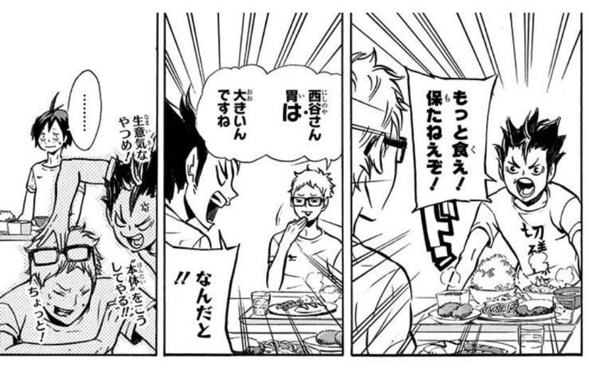 西谷はすごい食欲でしっかりとご飯を食べています。
