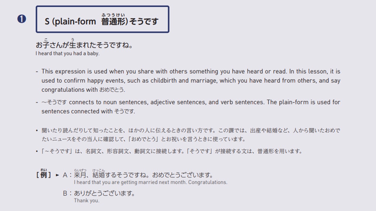 他にも第18課では、伝聞「そうです」の説明にもでてきます。