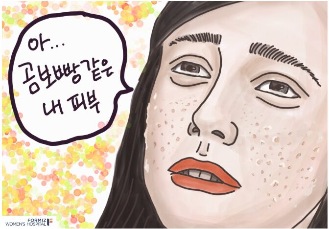 곰보피부 = 肌の表面が凹んだ傷跡でデコボコして見えたり、ニキビが盛り上がってボコボコした肌のことだそう。