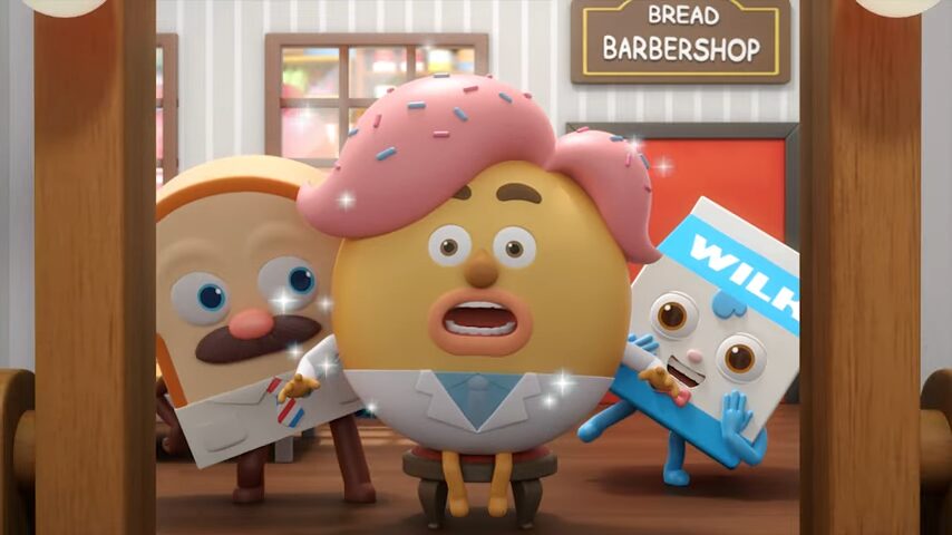 かわいいクッキーとデートすることになったソボロパンは、ブレッドバーバーショップでかっこよく大変身。でも困ったことに、このかっこいい見た目でいられるのはたった3時間だけ。