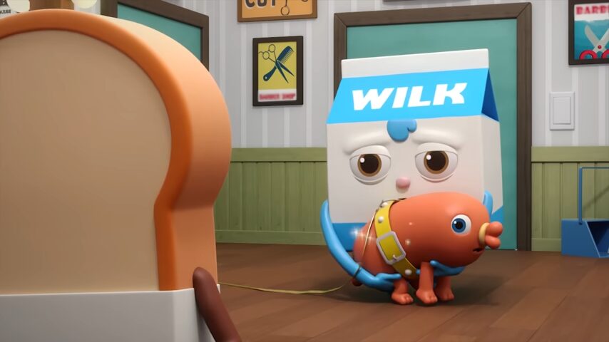 ブレッドもウィルクもソーセージの世話をしないことに対して、チョコがソーセージに声をかけているシーン。