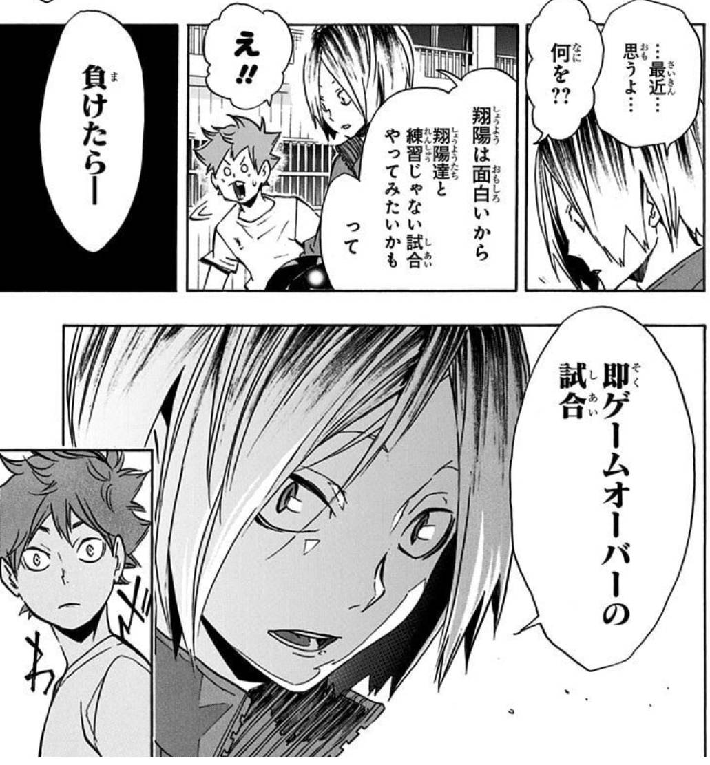 「最近思うよ…翔陽は面白いから翔陽達と練習じゃない試合やってみたいかもって 負けたら即ゲームオーバーの試合」